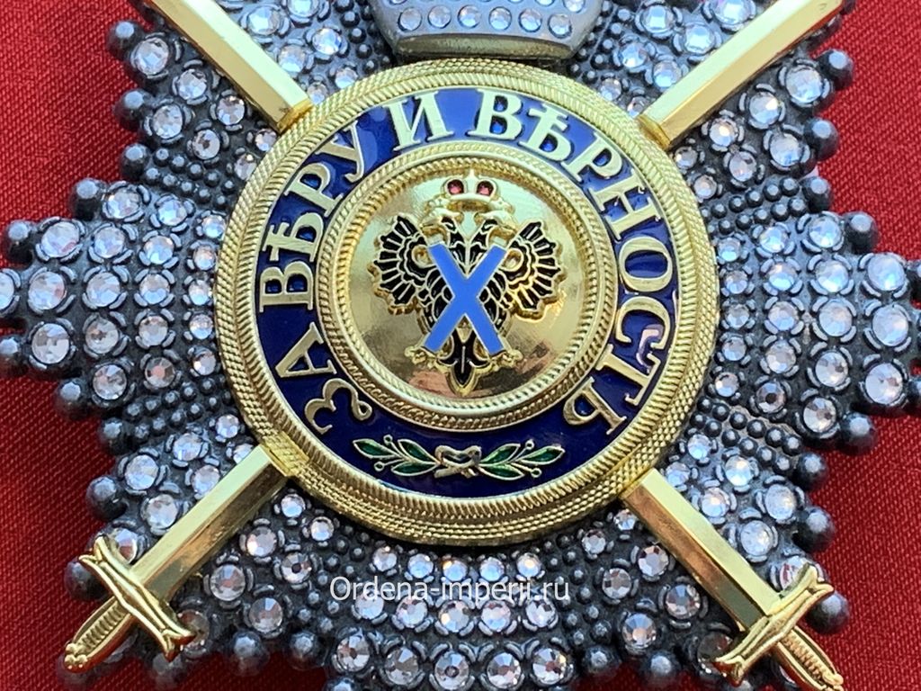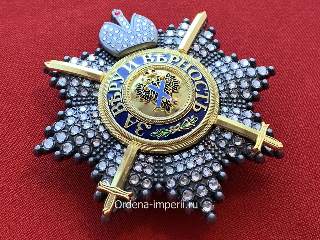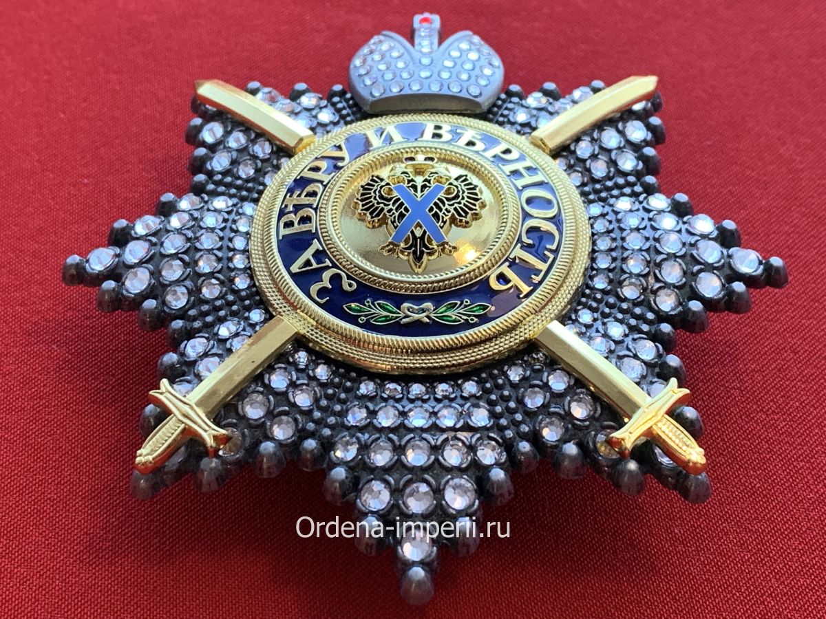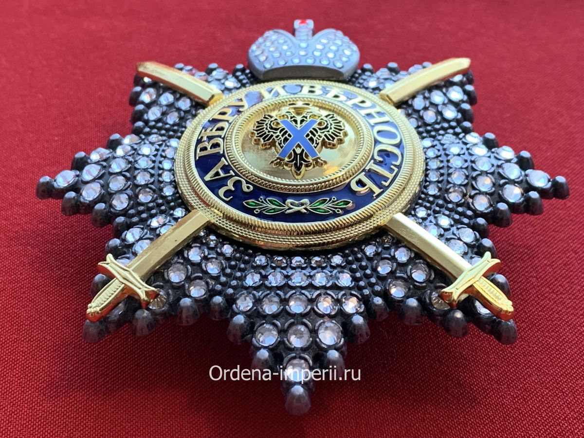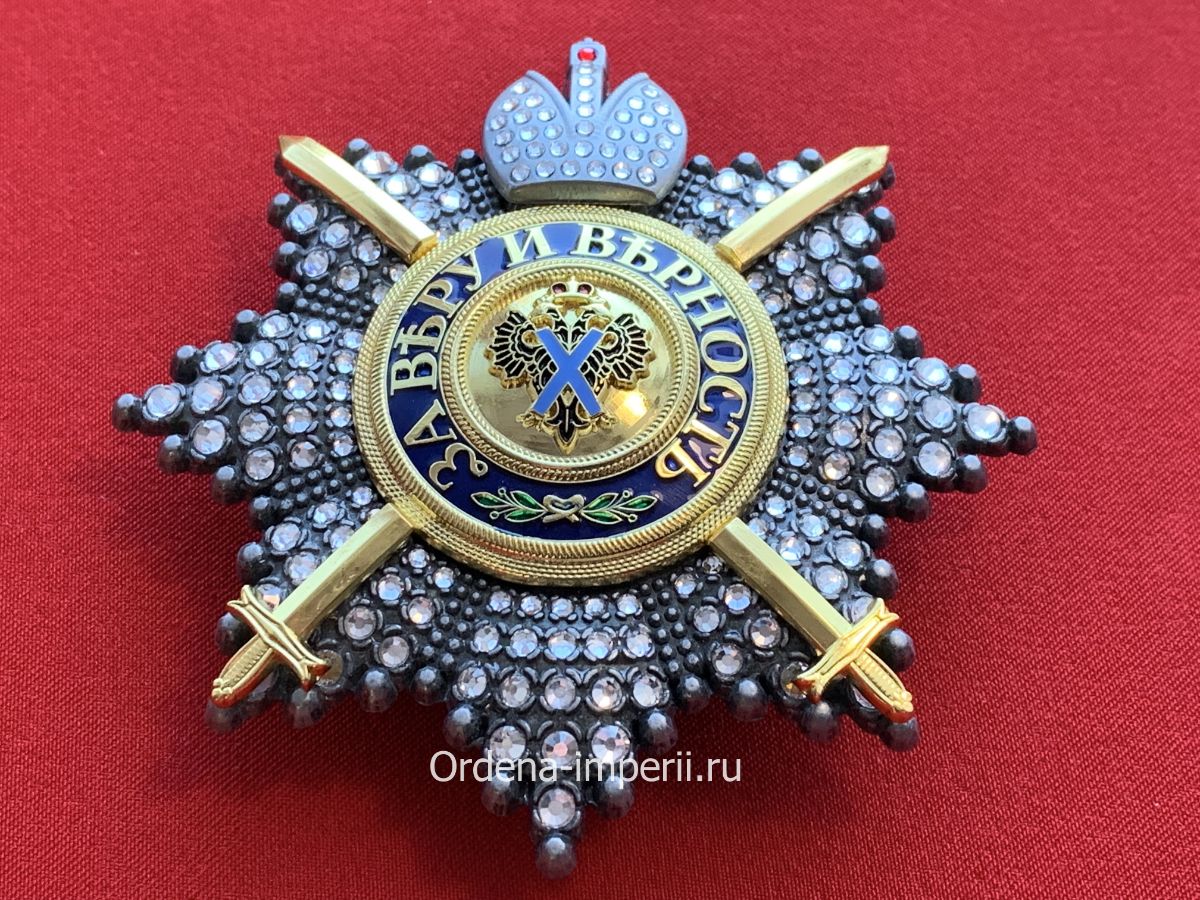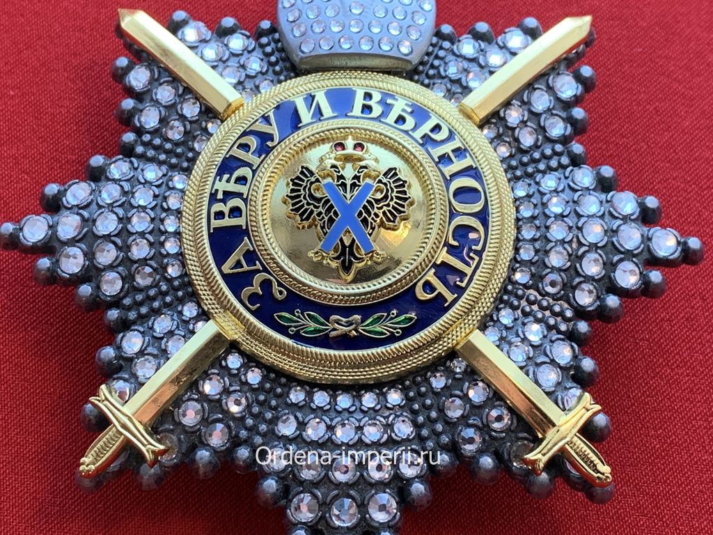 Звезда ордена Святого Андрея Первозванного со стразами, короной и мечами, копия LUX! Лот № 4.