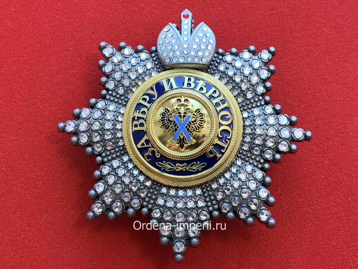 Звезда ордена Святого Андрея Первозванного со стразами и короной, копия LUX! Лот № 3.
