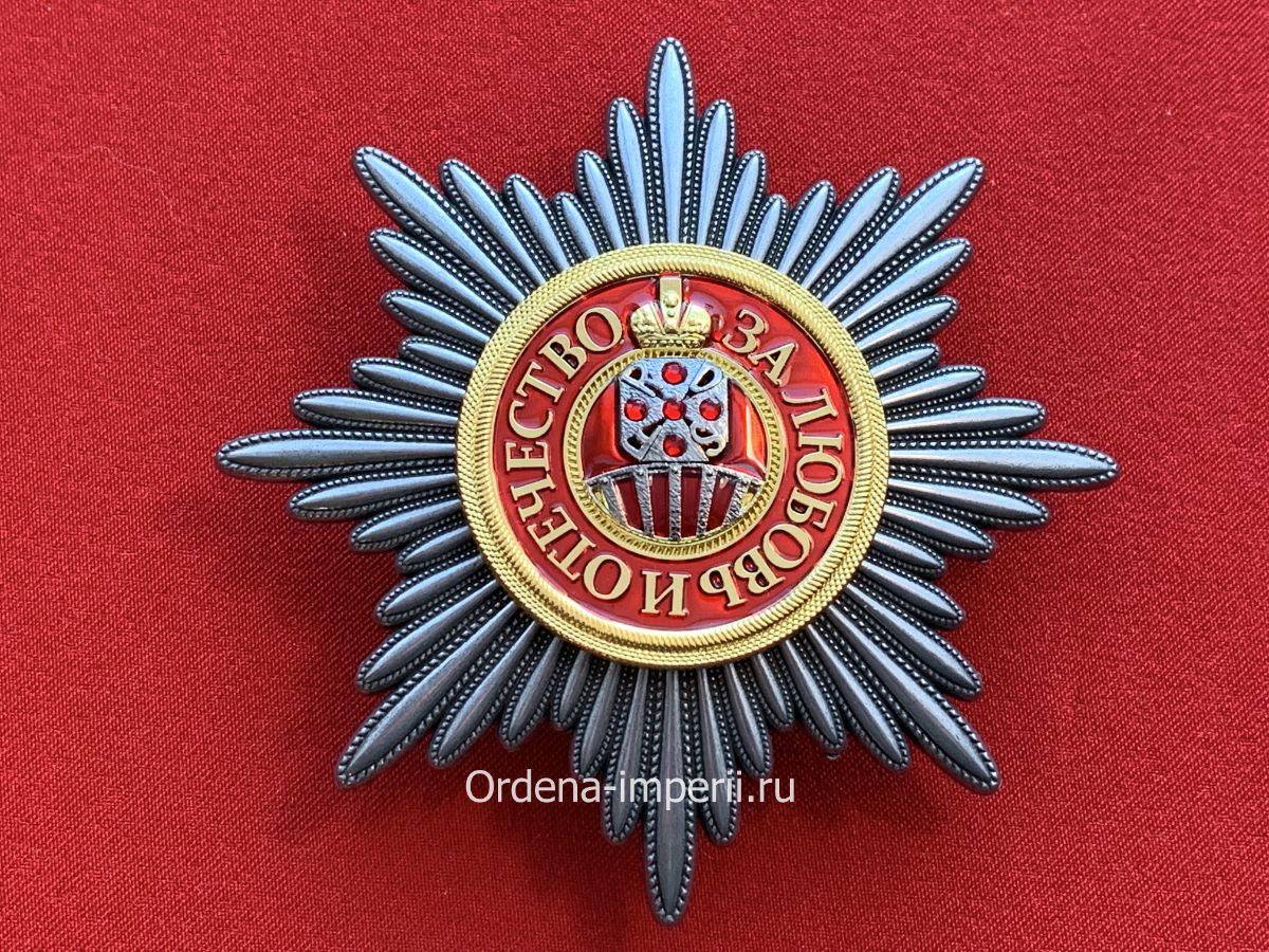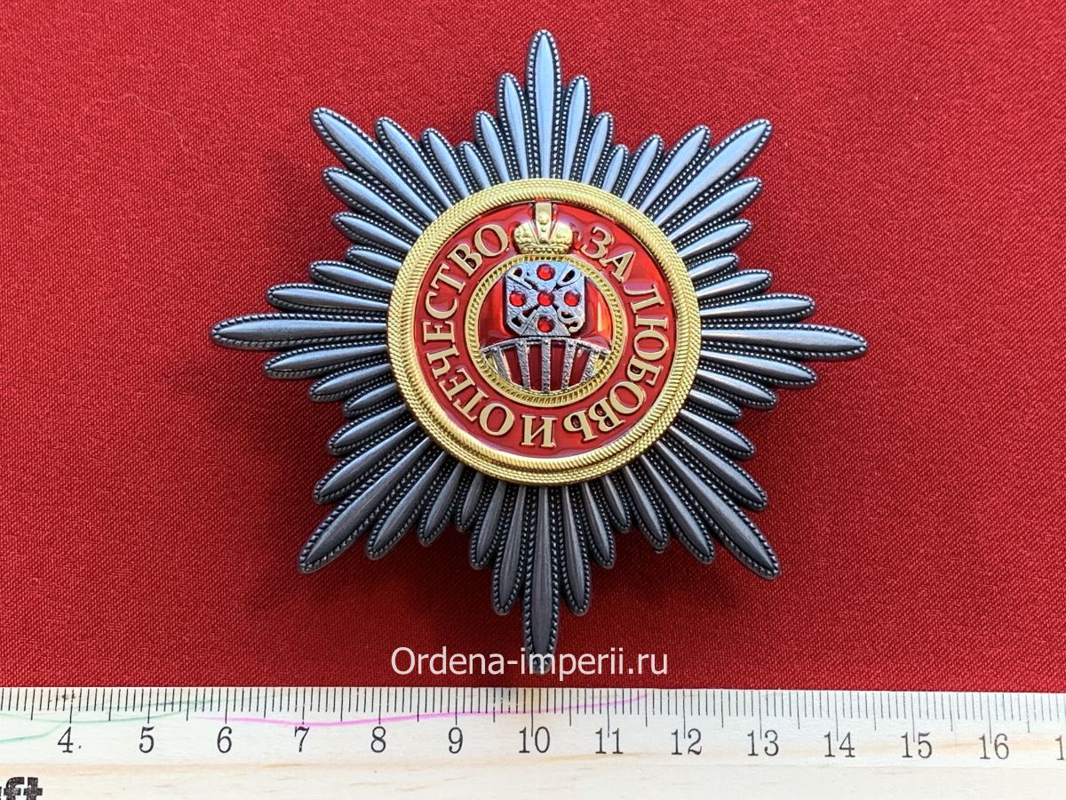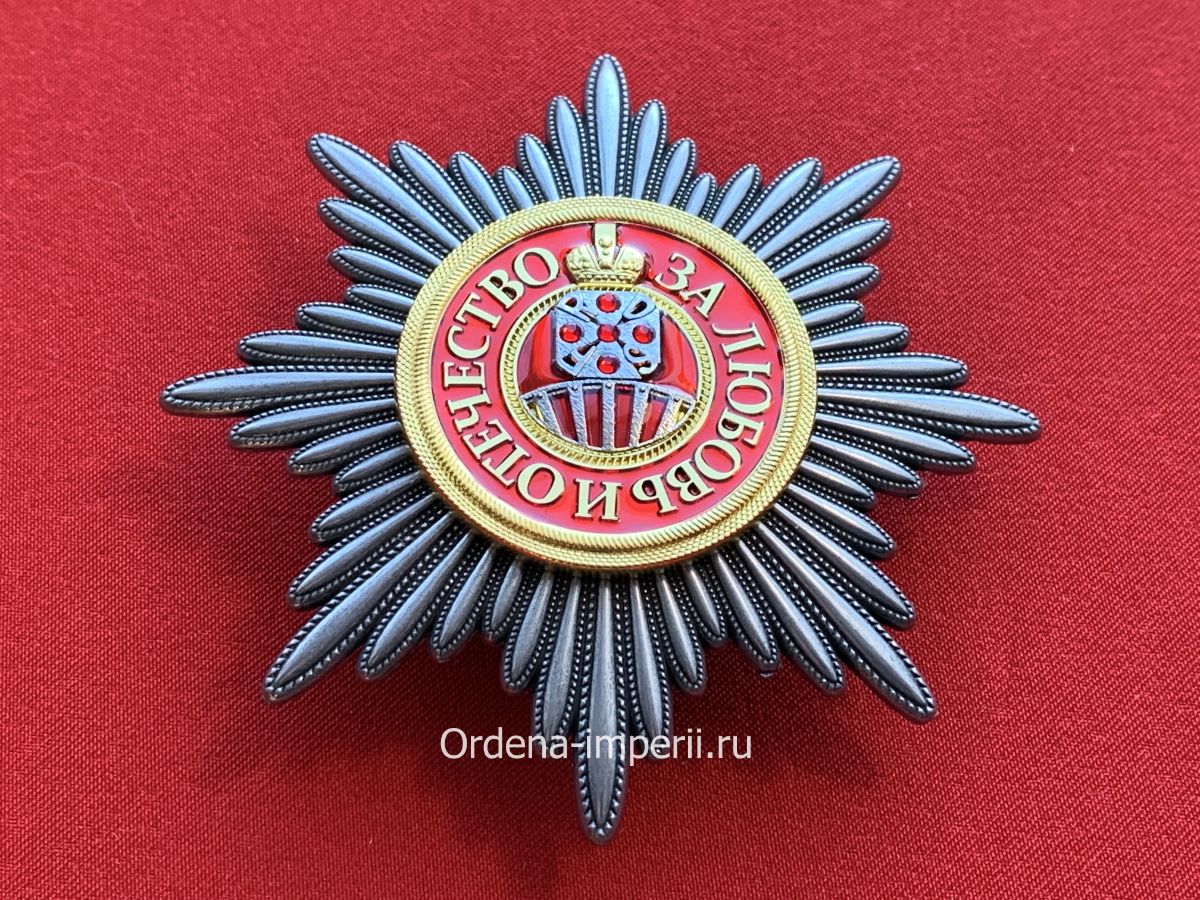 Уникальный лот! Полноразмерная звезда ордена Святой Екатерины, копия LUX! 1713 год. C элементами ручной работы! Выполнена из сплава цветных металлов, с использованием горячих эмалей! Размер 88х88 мм. Вес 83 гр.
