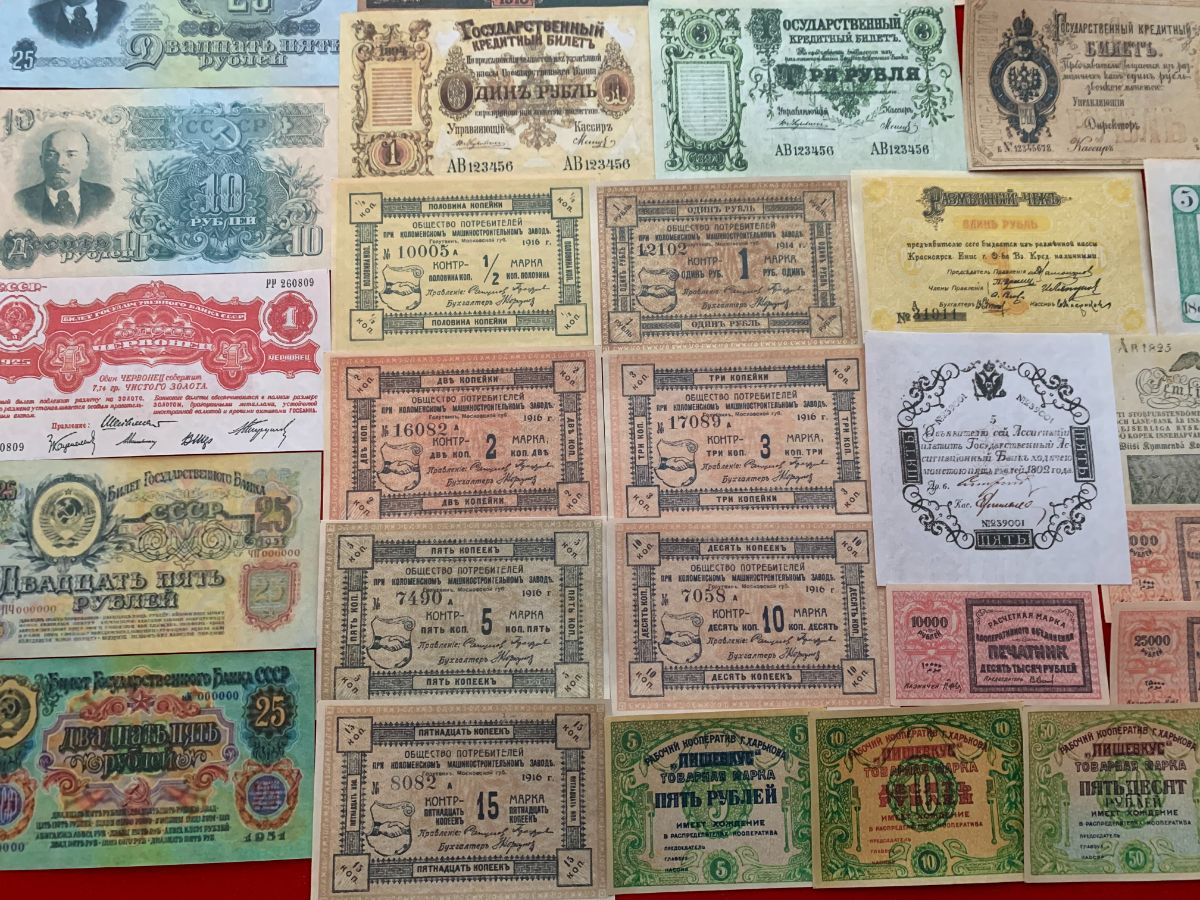 Лот № 1. "100 царских и Советских бон, без повторов! Копии высшего качества!