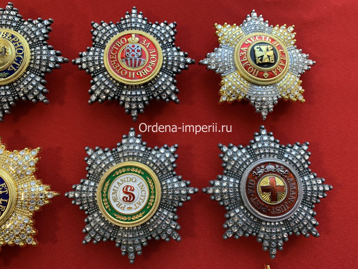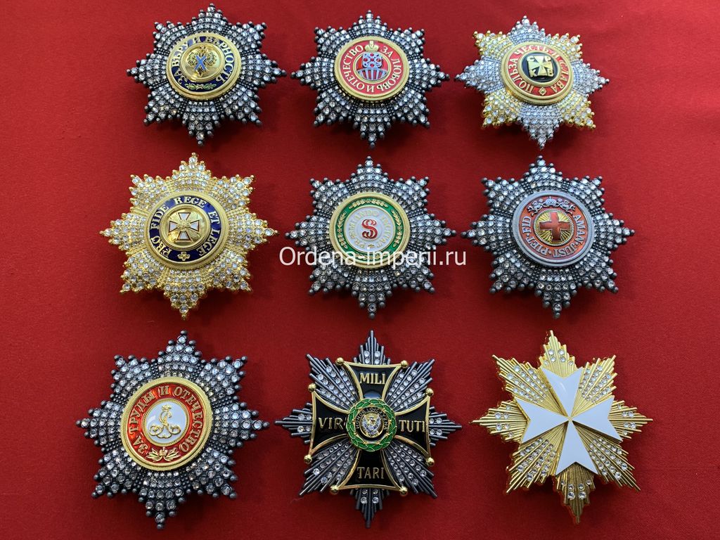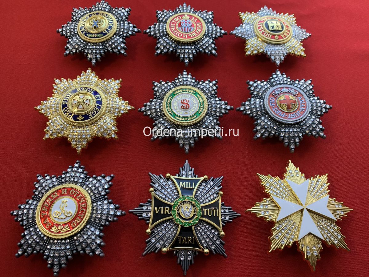 Коллекция звезд орденов Российской Империи со стразами, 9 штук без повторов! Копии LUX!