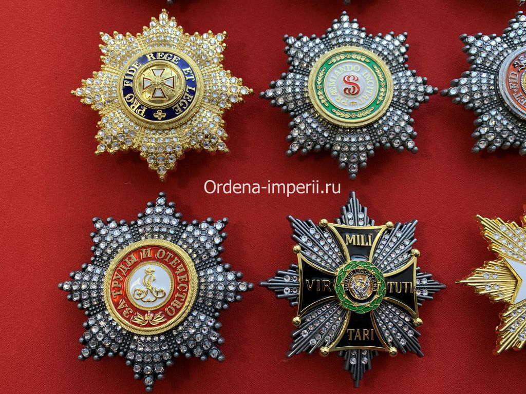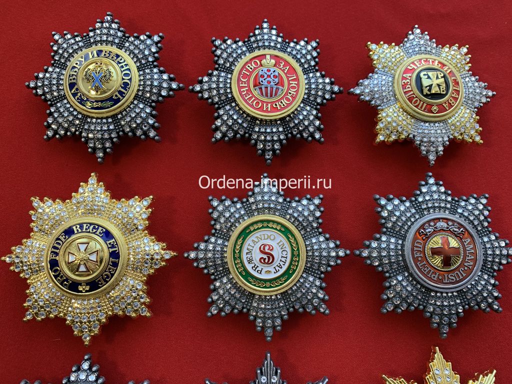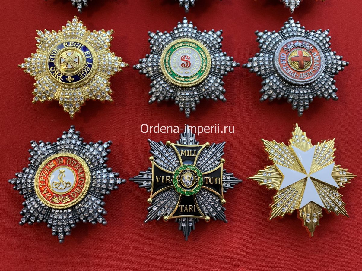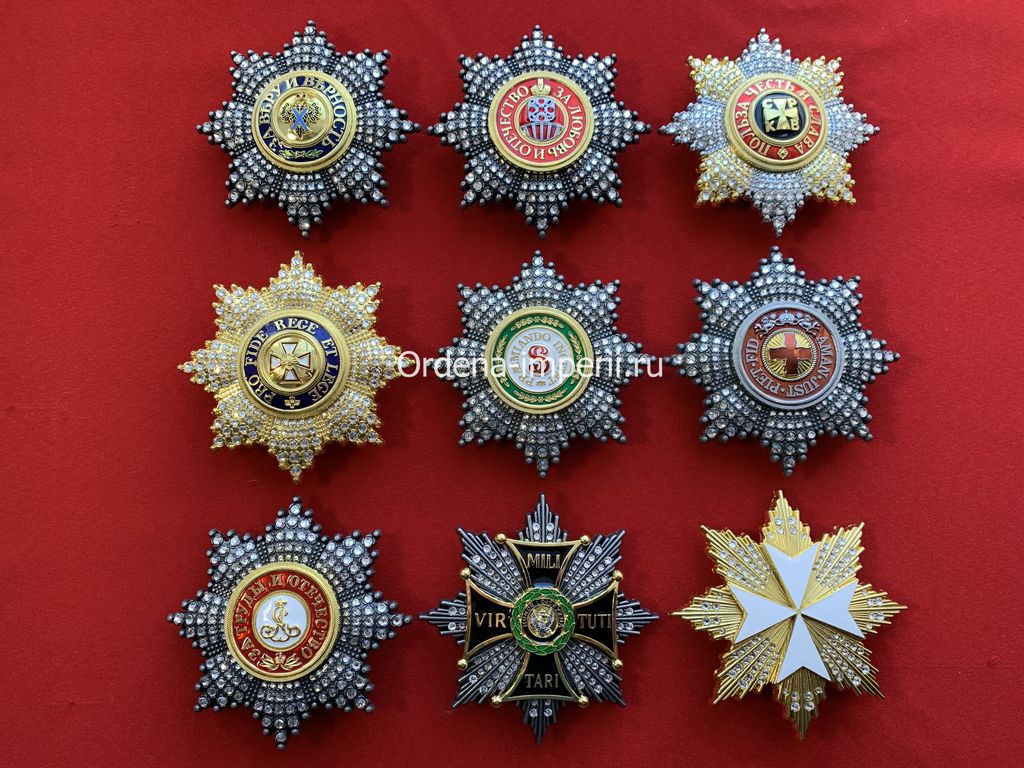 Коллекция звезд орденов Российской Империи со стразами, 9 штук без повторов! Копии LUX!
