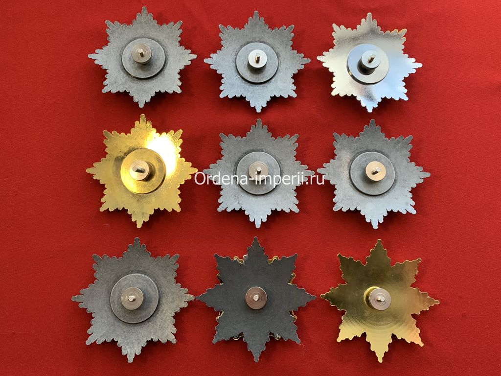 Уникальный лот! Коллекция "9 полноразмерных звезд орденов Российской Империи!" Копии LUX! Массивные и увесистые! C элементами ручной работы! Выполнены из сплава цветных металлов, с горячими эмалями, крепление - винт. Размер 88х88 мм.