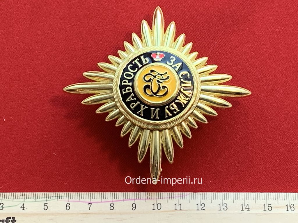 Уникальный лот! Полноразмерная звезда ордена Святого Георгия, копия LUX! 1769 год. C элементами ручной работы! Выполнена из сплава цветных металлов, с использованием горячих эмалей! Размер 88х88 мм. Вес 89 гр.