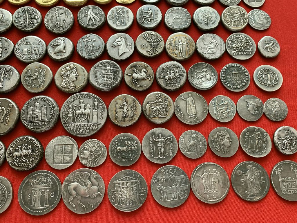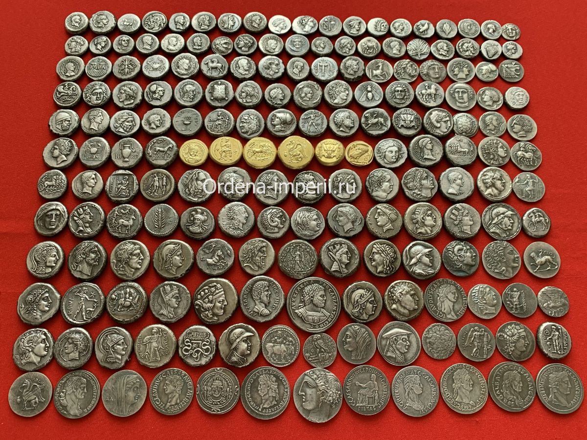Коллекция античных монет! 180 штук, без повторов! Копии высшего качества,не отличимые от оригиналов! К коллекции прилагается распечатка на 30 листах, с фото и описанием каждой монеты! Немагнитные, с посеребрением!