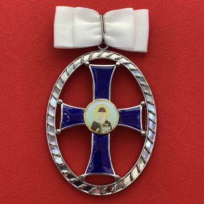 Орден Святой Ольги 2-й степени с бантом из муаровой ленты. Размер 100х57 мм., вес 35 грамм.