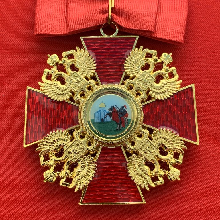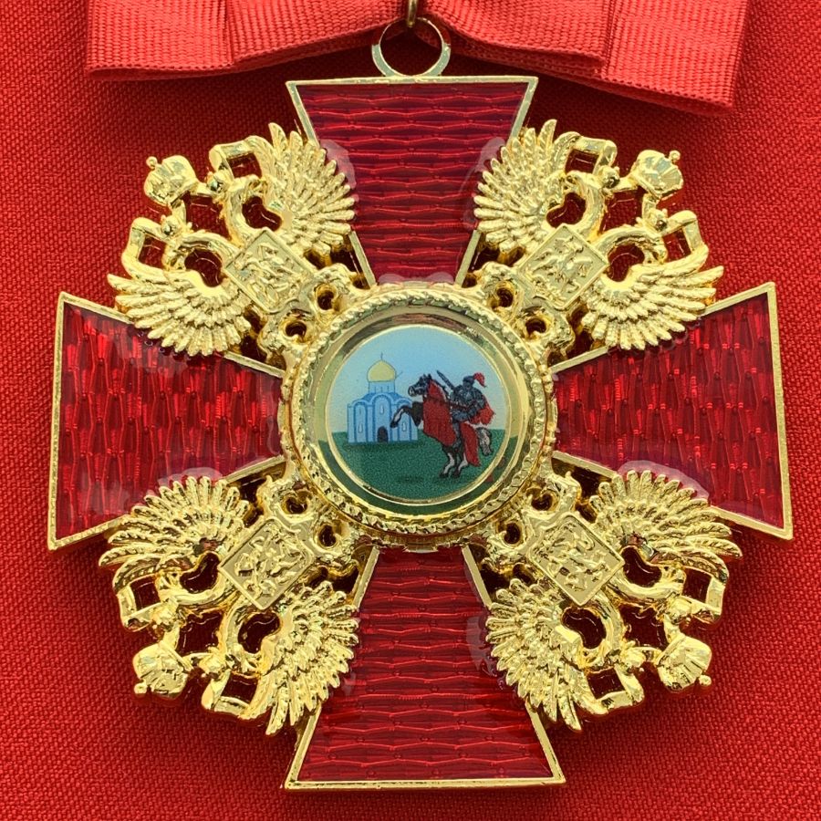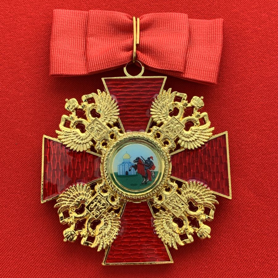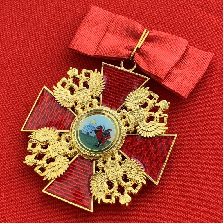 Орден Александра Невского большой, с бантом из муаровой ленты. Полноразмерный муляж LUX. Российская Империя. Размер 84х60 мм., размер без ленты 65х60 мм., вес 45 грамм.