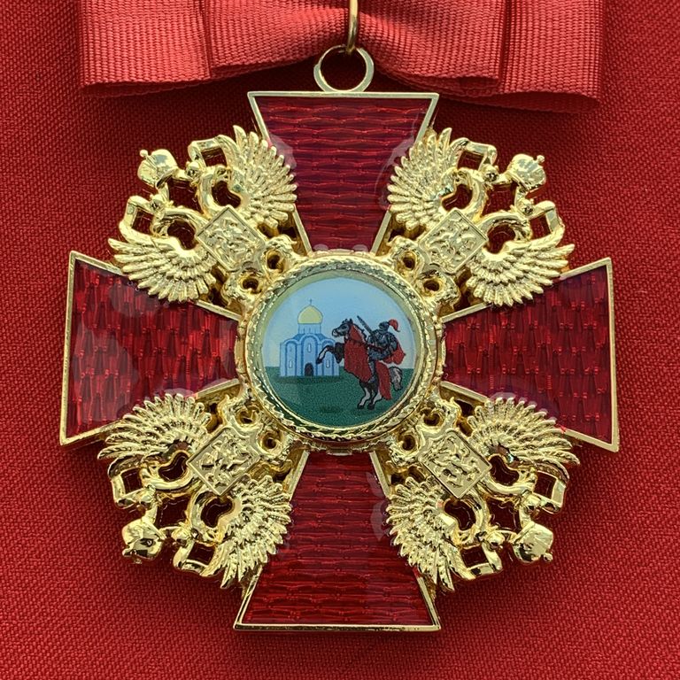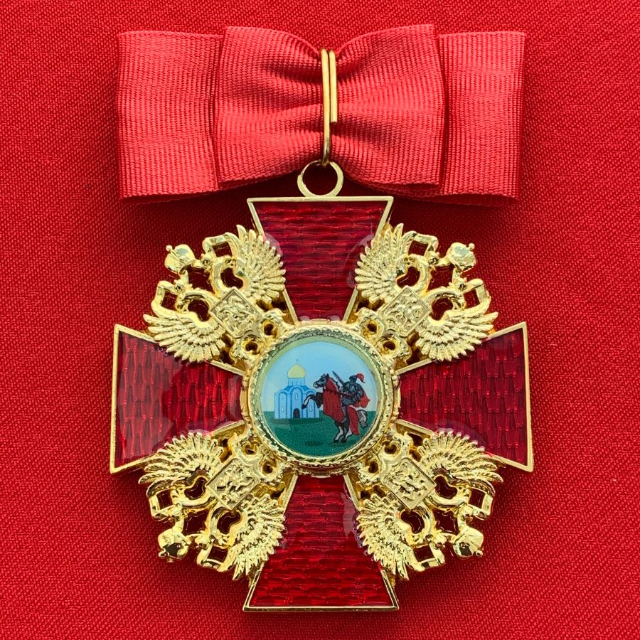 Орден Александра Невского средний, с бантом из муаровой ленты. Полноразмерная копия LUX! Лот № 69.