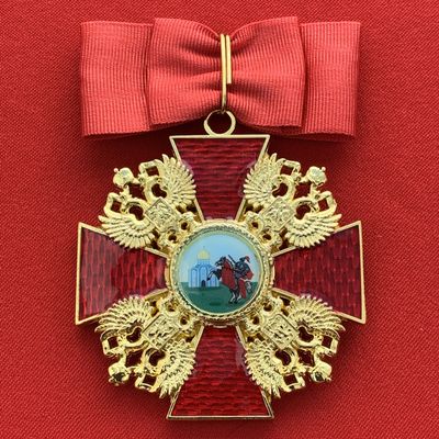 Орден Александра Невского средний, с бантом из муаровой ленты. Полноразмерный муляж LUX. Российская Империя. Размер 80х55 мм., размер без ленты 60х55 мм., вес 35 грамм.