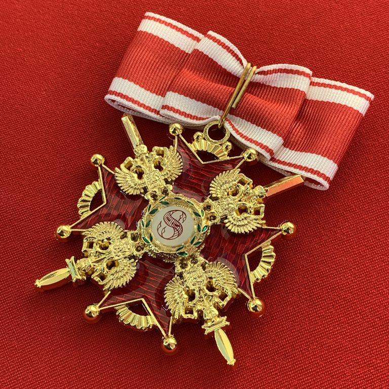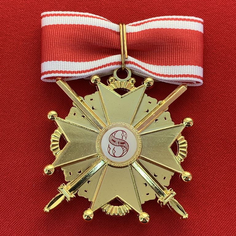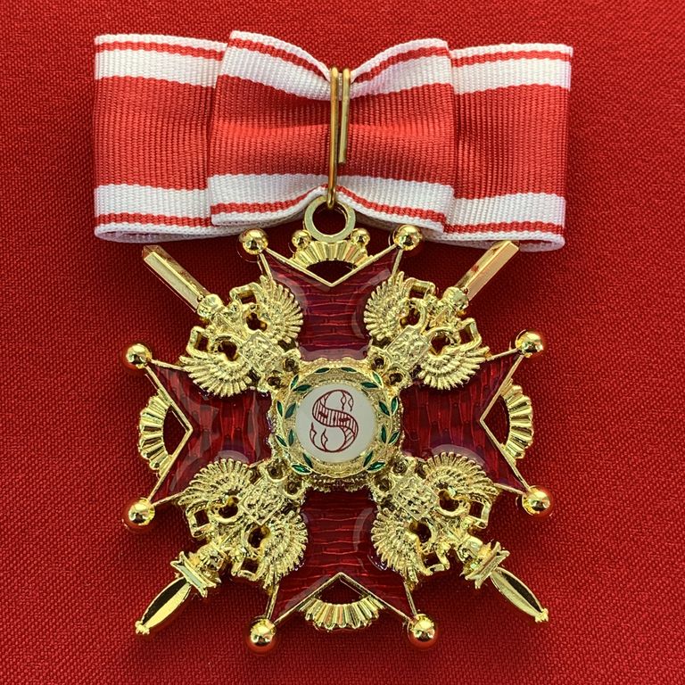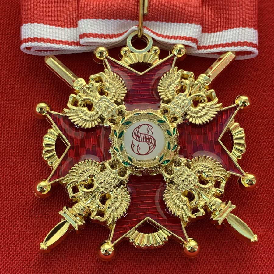 Орден Святого Станислава 2-й степени с мечами, с бантом из муаровой ленты.