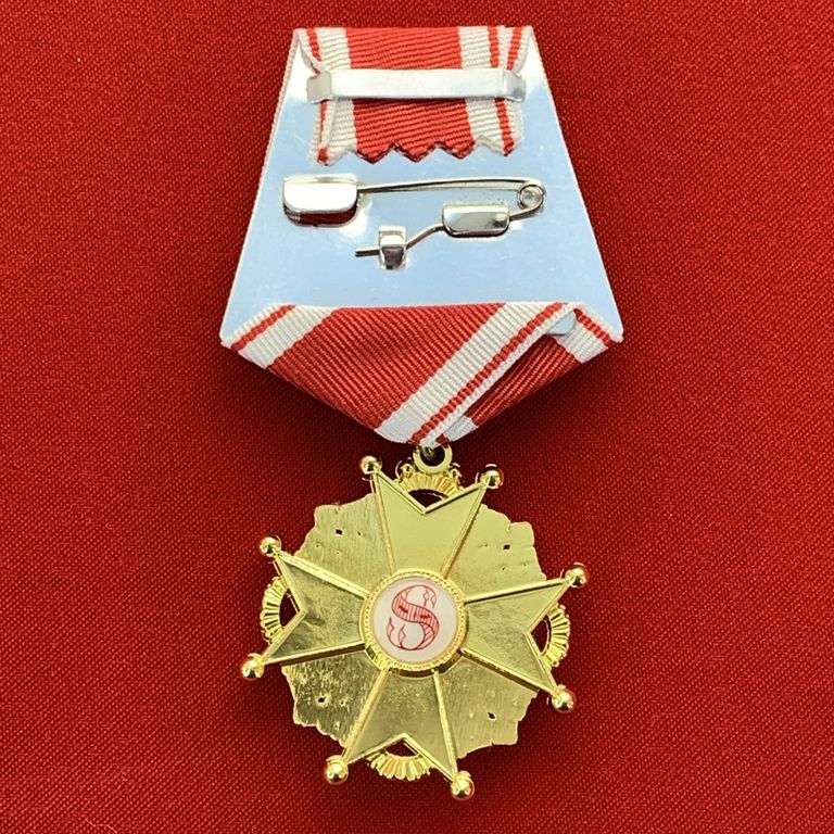 Выполнен из немагнитного сплава цветных металлов, с элементами ручной работы, составные элементы, холодная эмаль, колодка с муаровой лентой. Очень красивый орден.