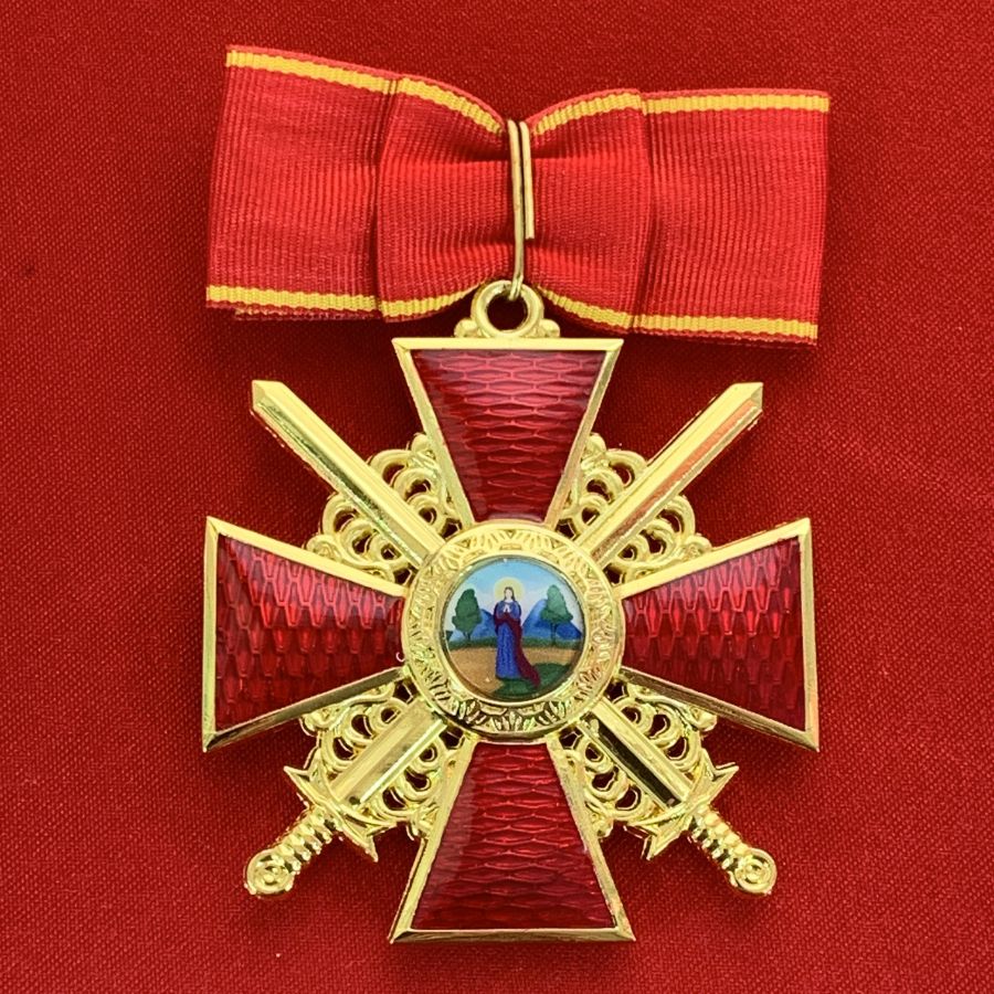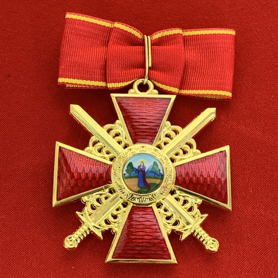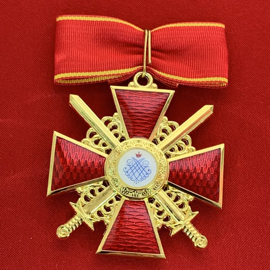 Орден Святой Анны 1-й степени с мечами , с бантом из муаровой ленты. Полноразмерная копия LUX! Лот № 91.
