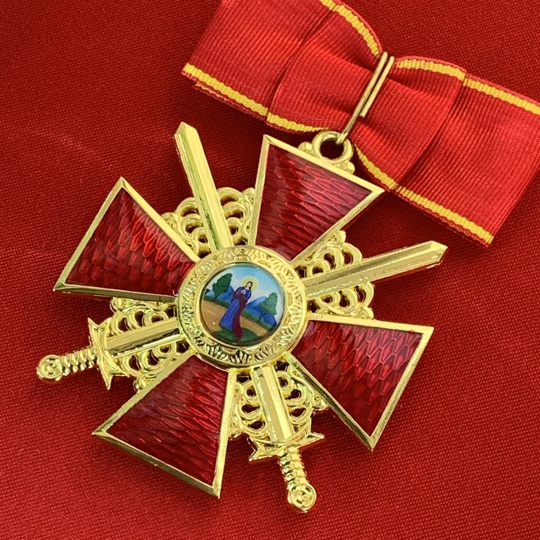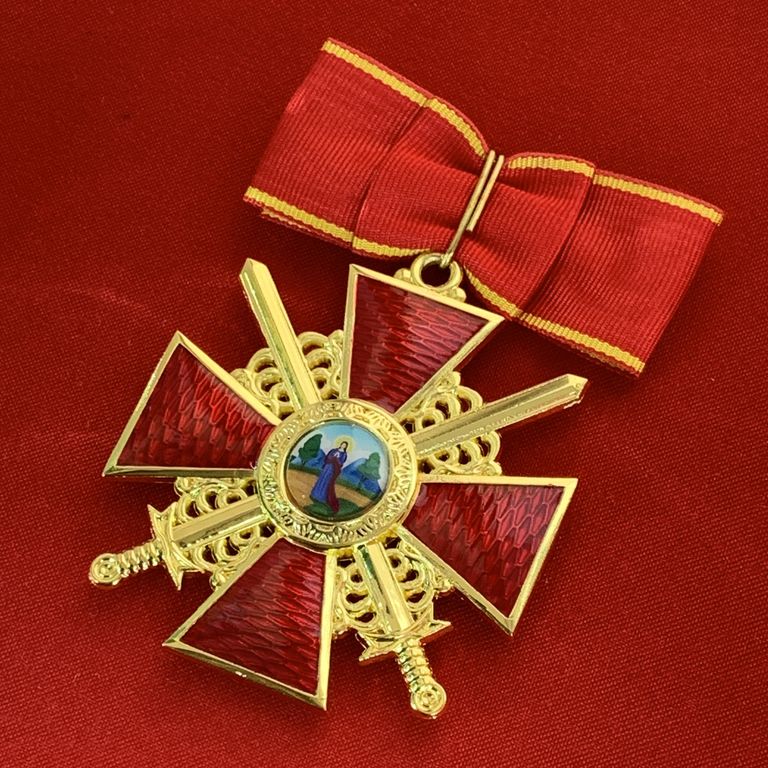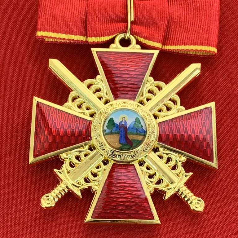Орден Святой Анны 1-й степени с мечами , с бантом из муаровой ленты.